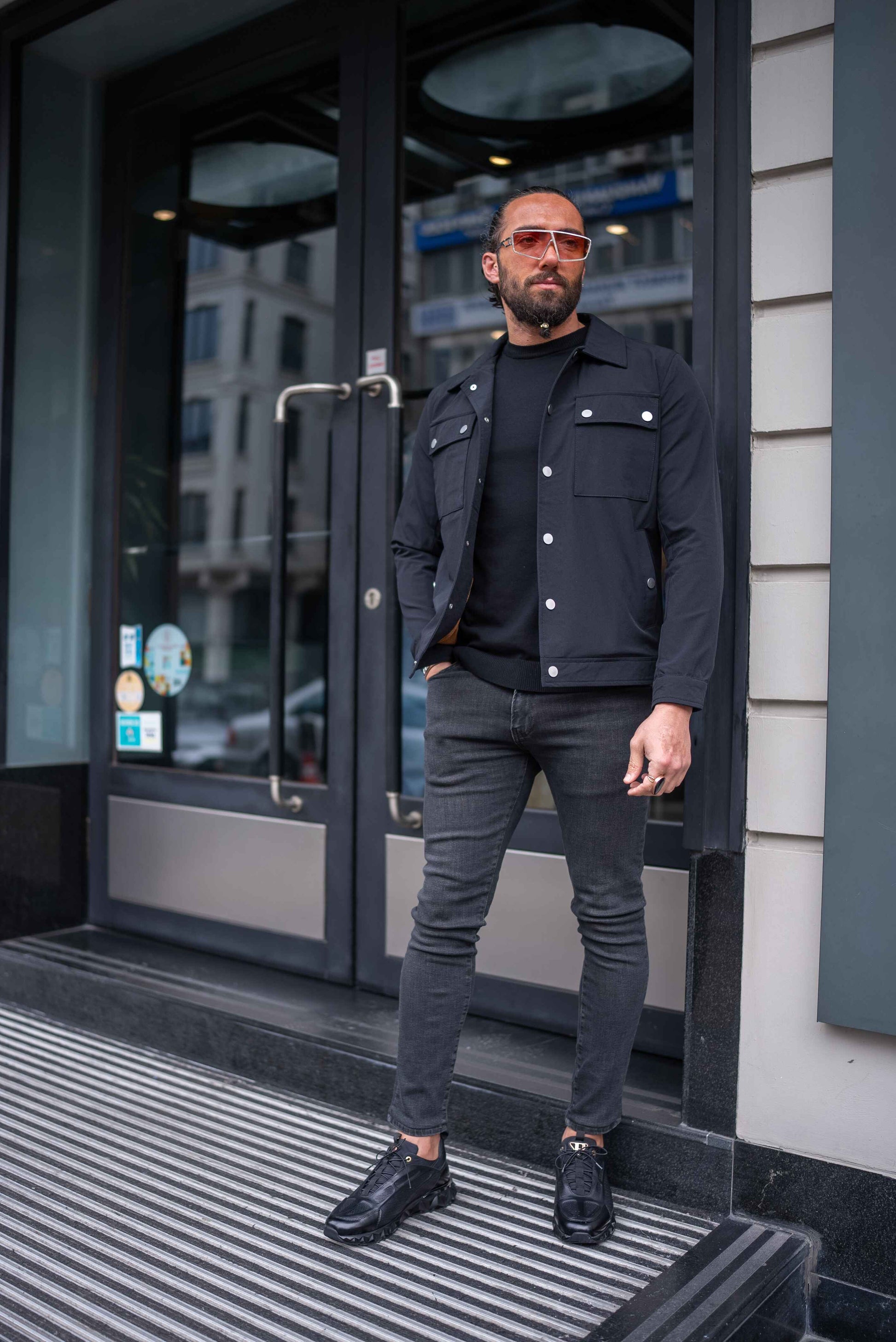 The Black Cotton Blend Collar Jacket for Men offers a versatile and durable outer layer for the modern man.