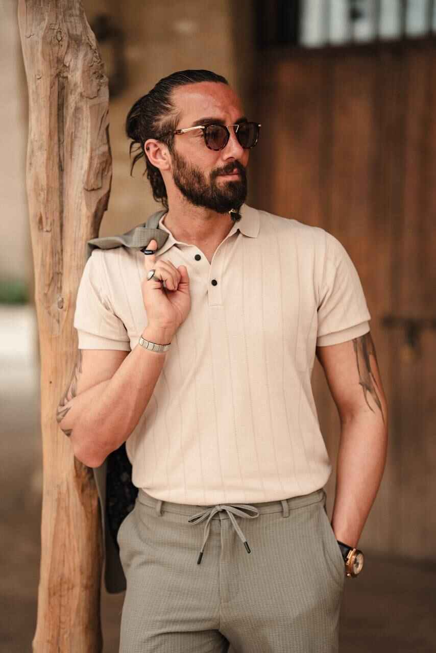 Step into summer sophistication with the SuitLegacy Men's Light Beige Knit Polo Shirt from our latest Summer collection.