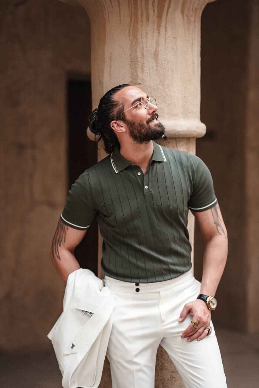 Elevate your summer style with the SuitLegacy Men's Olive Green Knit Polo Shirt from our latest Summer collection. Crafted for both comfort and a touch of distinction, this short-sleeved polo features a rich olive green knit with subtle contrast trim on the collar and cuffs.