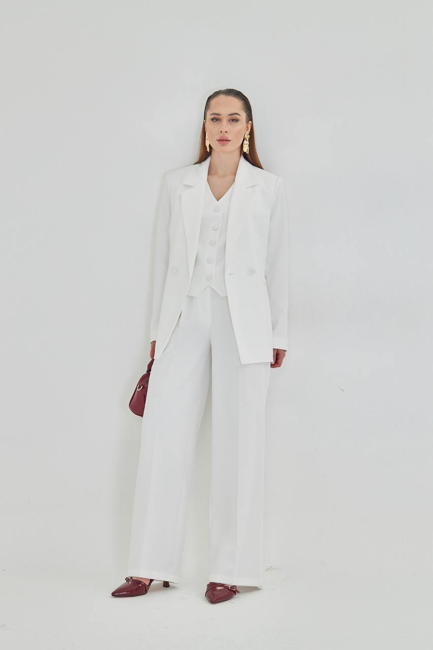 Featuring a sharp double-breasted blazer and flowy wide-leg trousers, this set blends confidence with sophistication — perfect for commanding the boardroom or owning the spotlight at any formal event.